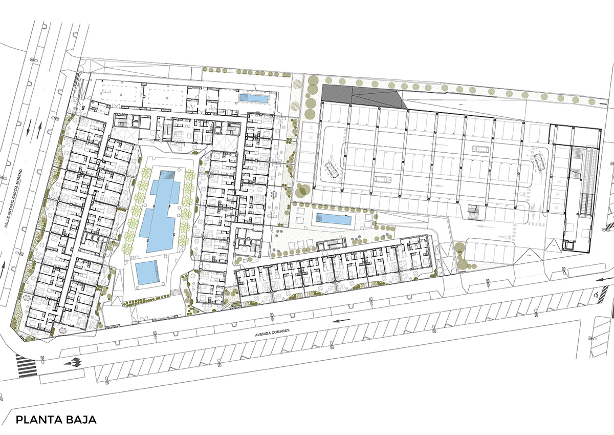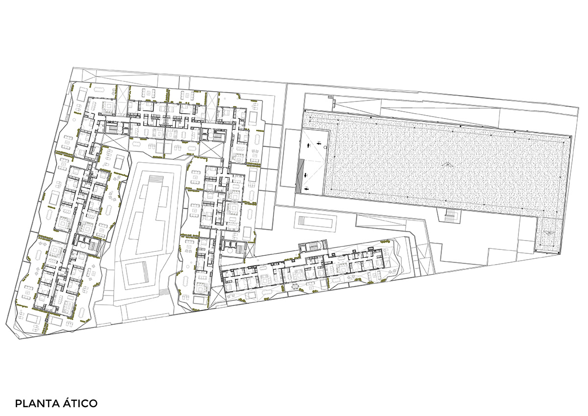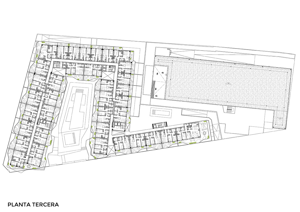 La sinuosidad de las terrazas y el cuidado uso de los materiales , buscan amplificar la sensacion espacial del residencial